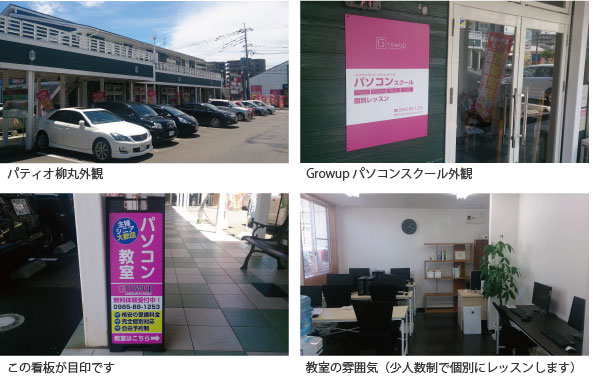 浮之城にあるフェニックスガーデンのパティオ柳丸内に、当パソコンスクールがあります。 駐車場は、パティオ柳丸内に約40台、フェニックスガーデンには100台以上完備されておりますので、 お車での通学にもとっても便利です。